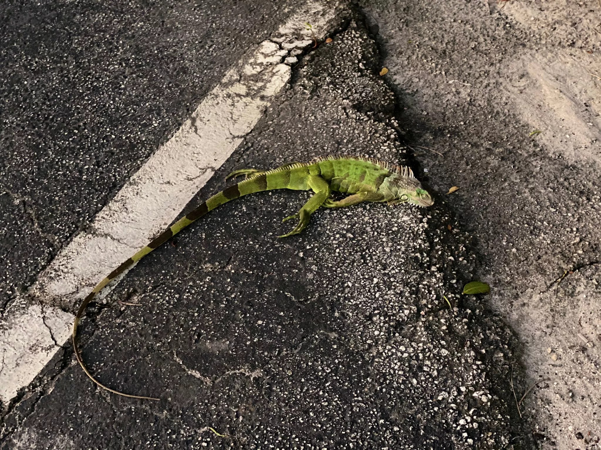 As most Floridians know, the cooler weather causes iguanas – one of the state’s most pervasive invasive species – to rain down from the trees. Because iguanas are cold-blooded, their bodies can become frozen and essentially paralyzed when temps drop into the 40s. Thus, the National Weather Service in Miami issued an advisory yesterday: