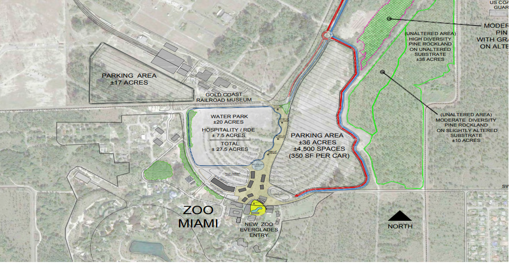 The project calls for seven water slides, three kid-friendly attractions, a lazy river, a wave pool, and a family-friendly hotel to be constructed on the paved, overflow parking area of Zoo Miami, according to the project proposal New Times obtained via a public-records request.