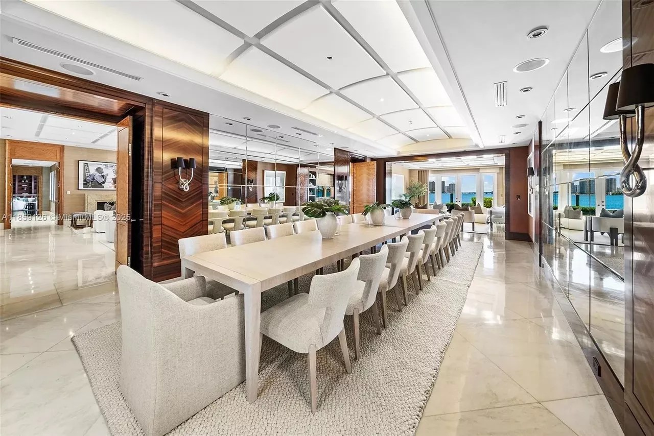 The home is as expansive as you’d expect for one with such a high price tag; the front lawn could host a few football games at once, its dining room could comfortably accommodate a Medieval Times dinner theater show, and one might easily recreate Beauty and the Beast’s iconic waltz in the atrium. Looking to host dinner for 21 of your closest friends? Want to recreate Da Vinci’s The Last Supper painting? For a cool &169 million, this dining room could be yours. A bifurcated staircase reaches across the sides of an atrium, outstretched in the home’s entryway like arms inviting a luxurious hug.