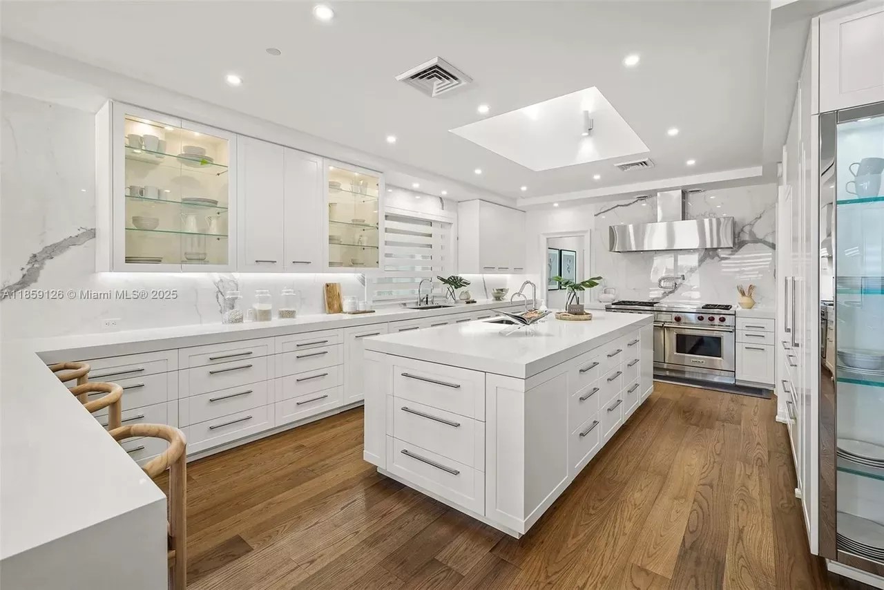 If the restaurant-grade appliances don’t catch your eye in this stark-white kitchen, the storage situation might. This kitchen has drawers for days.