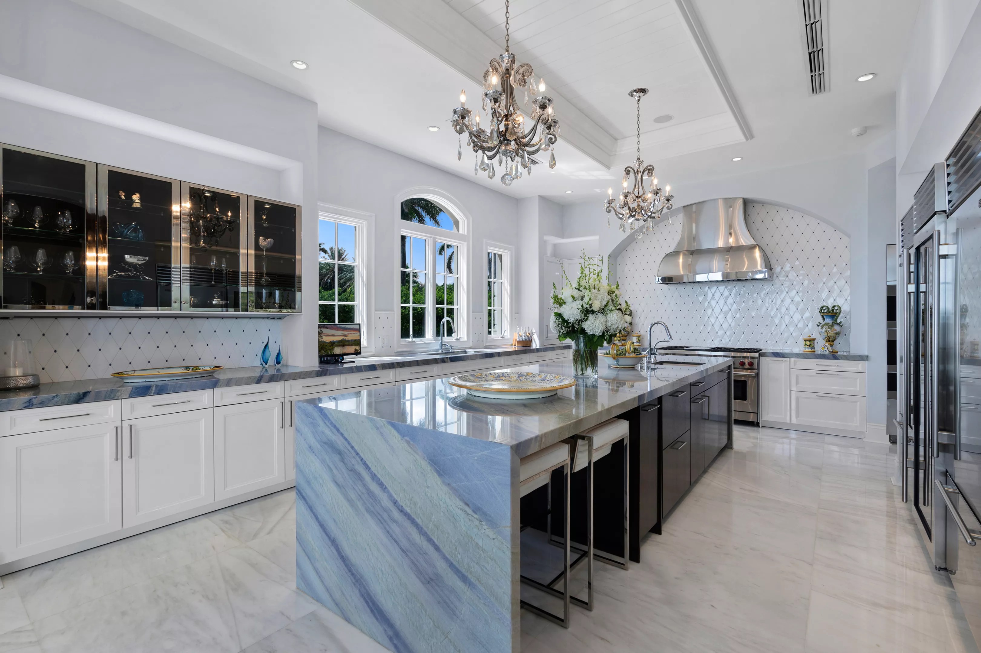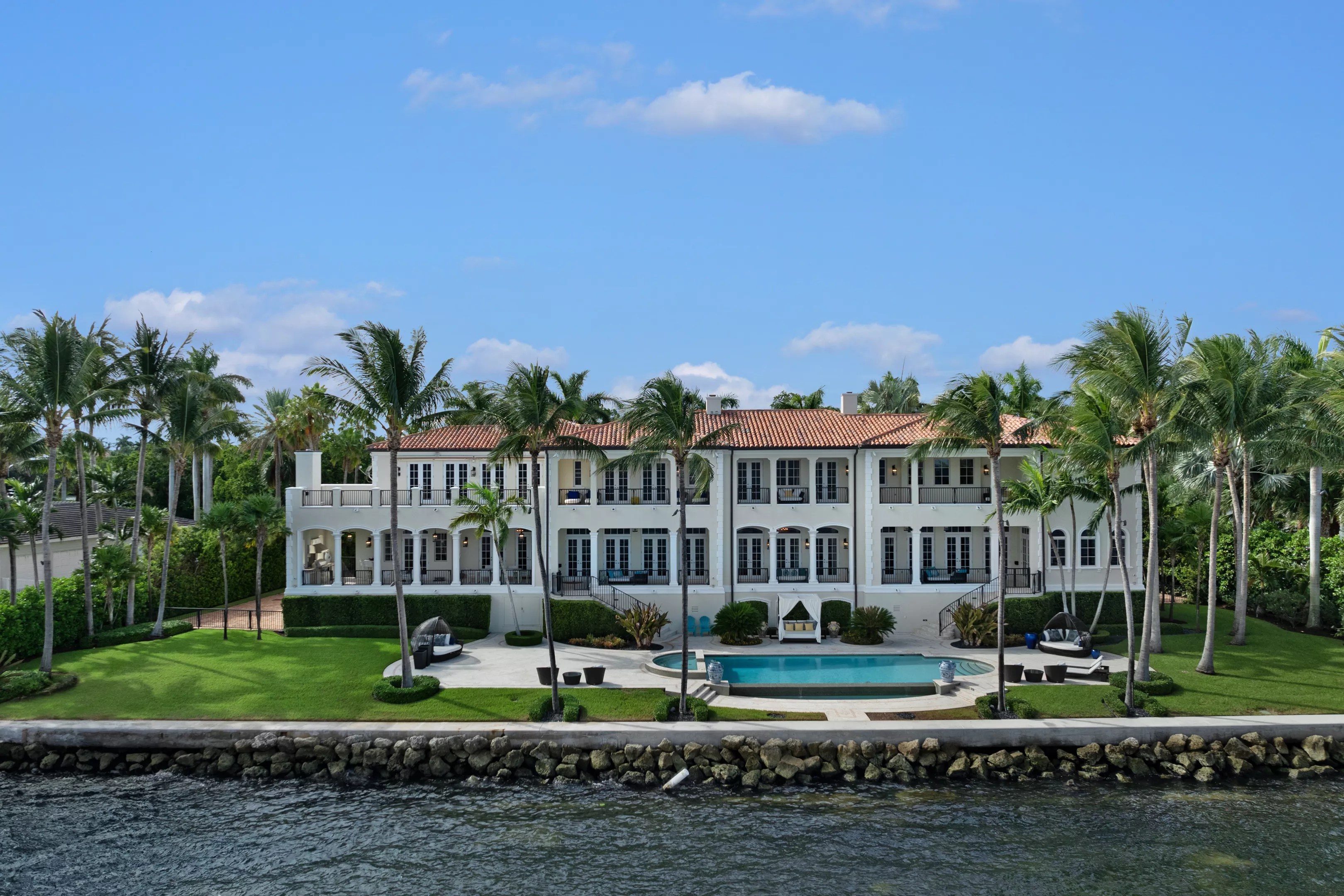 The home features 225 feet of water frontage offering open views of Biscayne Bay, a gourmet chef’s kitchen with custom cabinetry, a custom wine cellar with the space to hold more than 2,700 bottles in a temperature-controlled environment, a game and entertainment room, two home offices, an elevator, and a fully-equipped home gym. The estate also offers spacious outdoor terraces, a summer kitchen, a bayfront pool, and an air-conditioned four-car garage. The sprawling estate was sold for million. Photo by Become Legendary / Dennis Carvajal at ONE Sotheby’s International Realty