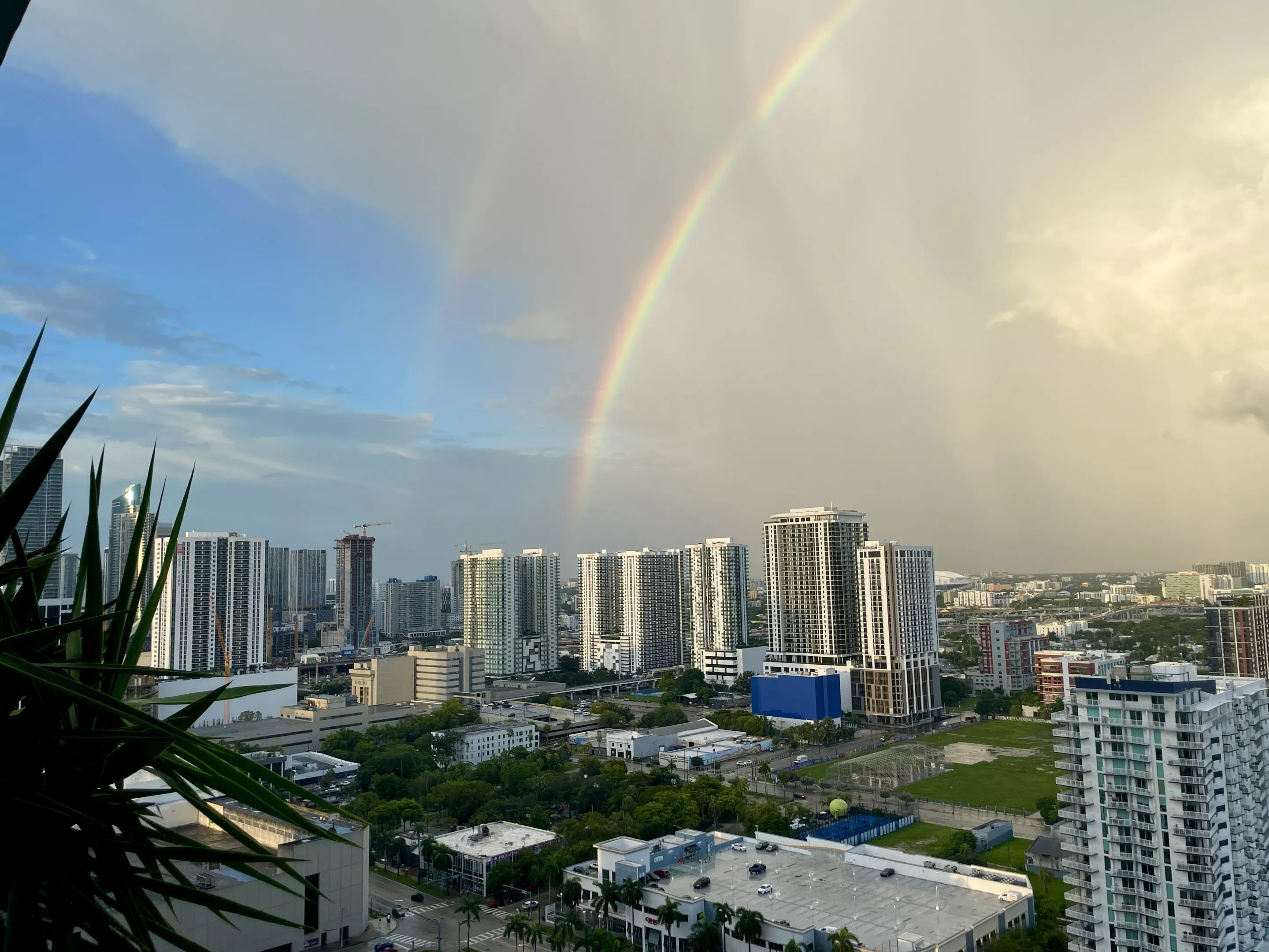 A spectacular rainbow paints the sky over Edgewater, bringing a splash of color to a stormy week in Miami