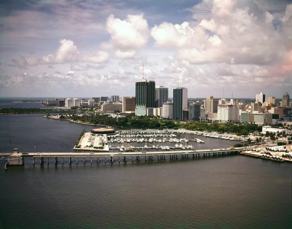 With the 1970s, downtown Miami entered a sleek, modern era, with skyscrapers standing tall against a backdrop of endless sea and sky.