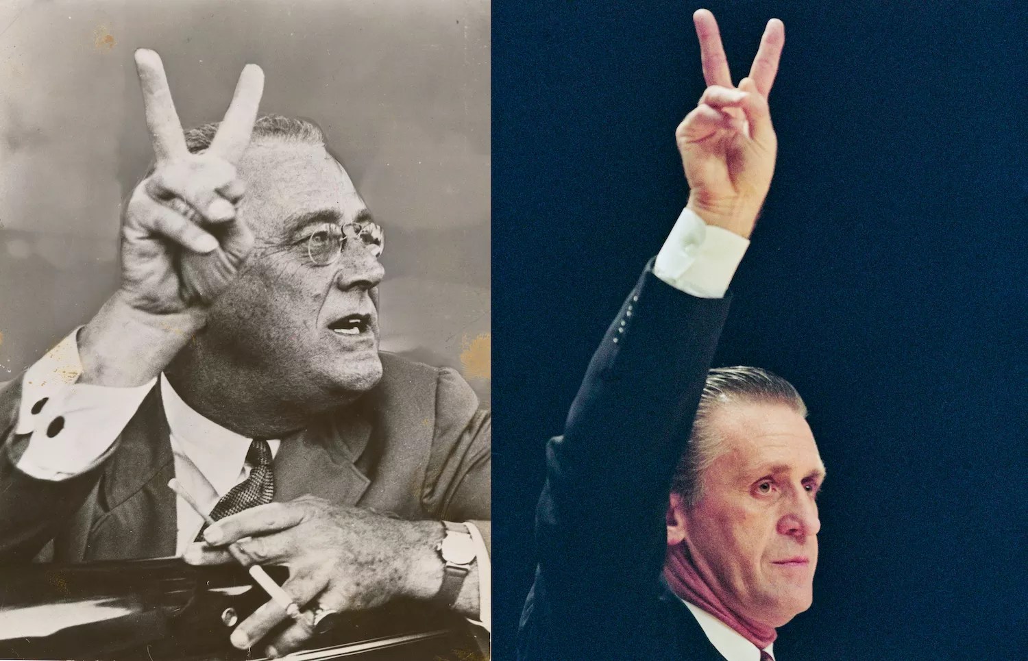 FDR photo via National Archives (NAID: 31491234) | Pat Riley photo by Simon Bruty/Allsport/Getty Images