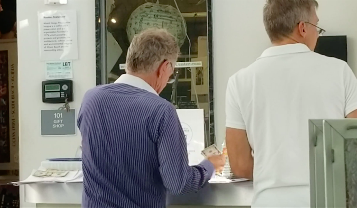 Political consultant Randy Hilliard, left, was filmed paper-clipping $50 bills onto new member applications for the Miami Design Preservation League. MDPL Director Daniel Ciraldo says Hilliard was attempting to buy this week's board election.