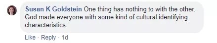 She then added, “One thing has nothing to do with the other. God made everyone with some kind of cultural identifying characteristics.”