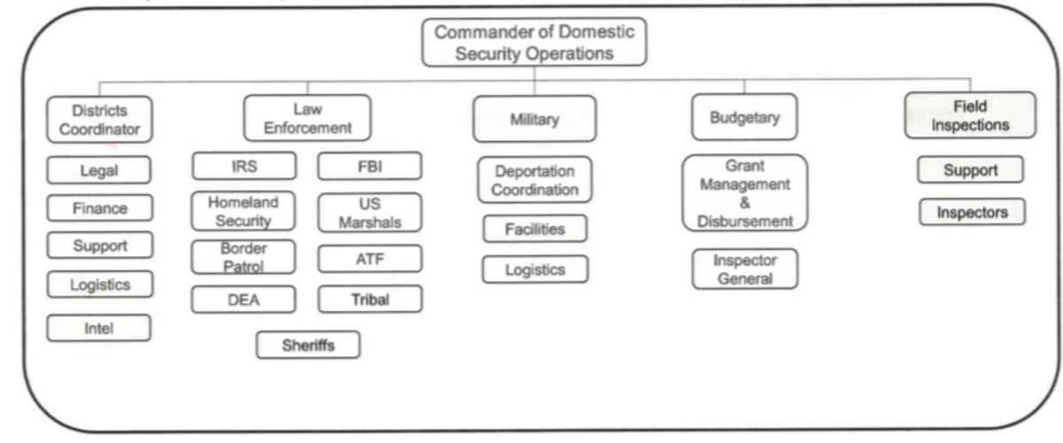 The documents lay out timelines and several “lines of operation” for accomplishing this domestic law enforcement restructuring by the end of 2025.