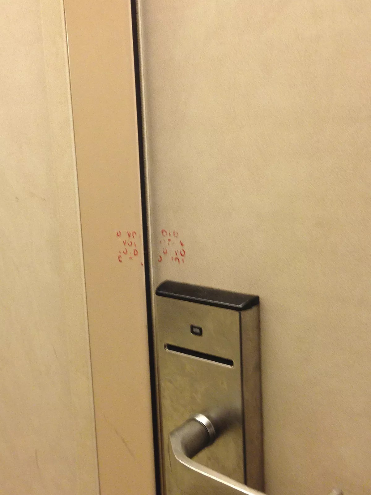 Time would tell it wasn’t enough After Analia Muñoz was assaulted, Royal Caribbean staff covered her door with caution tape. Courtesy of Analia Muñoz