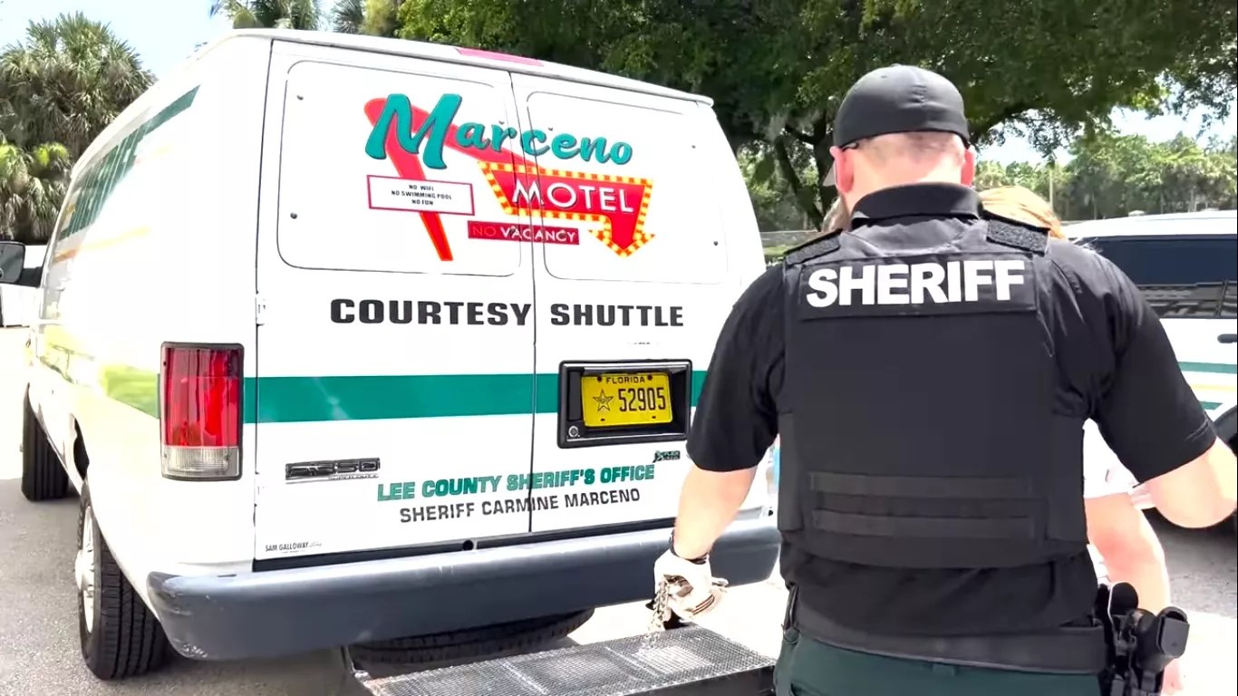 His mode of transporting suspects is somewhat unconventional as well: he has a paddywagon with the words “Marceno Motel” printed on the back of it – his catchphrase for a local jail. Made-for-television segments are often posted on the Lee County Sheriff’s Office social media pages, in which Marceno references the “Marceno Motel” and reveals the county jail’s latest “guests” and their respective charges. (Marceno’s vehicle collection also features an official sheriff’s office ice cream truck, which is emblazoned with a huge graphic print of him surrounded by smiling kids.)