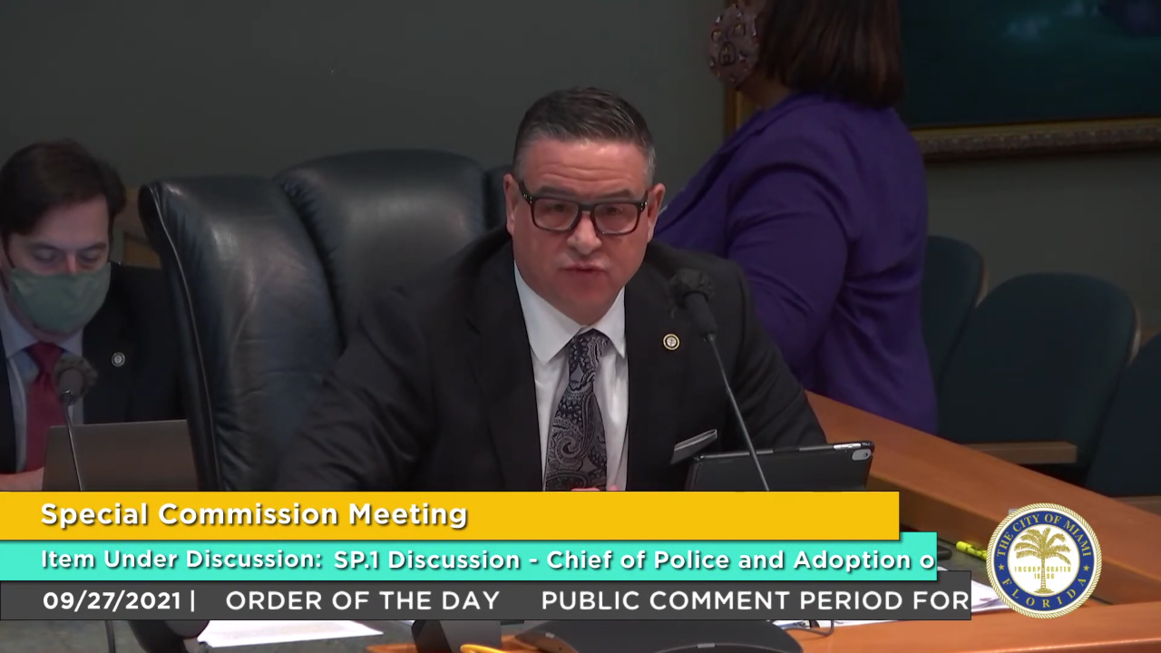Monday’s special meeting was scheduled to begin at 10 a.m. But in typical Miami fashion, the proceedings commenced more than an hour late, at 11:10 a.m. That’s fine and dandy, par for the course, except for the fact that public comment had been slated for 11:30 a.m., and numerous citizens and police officers had taken time out of their day to speak at the meeting.