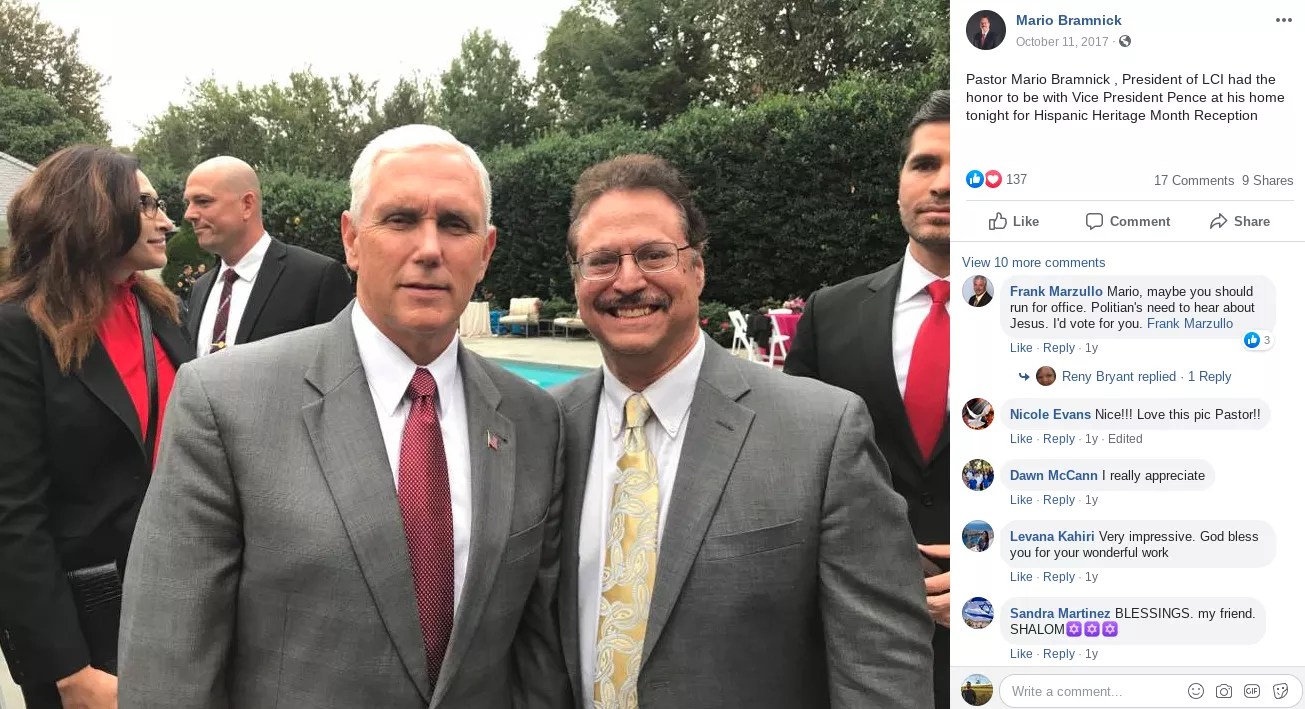 Bramnick’s pro-Trump advocacy has earned him multiple visits to the White House as well as a spot in the president’s faith office. In June, Bramnick was named to the Latino advisory board for Trump’s 2020 campaign.