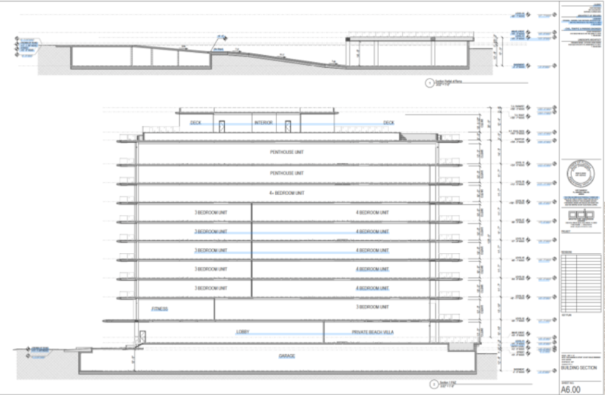 One of residents’ biggest concerns is the proposed construction of a subterranean garage beneath the Hillcrest by the Sea tower that will extend to within three feet of the property line of the Carlisle. Gallagher points out that the Eighty Seven Park luxury condo tower also included a subterranean garage.