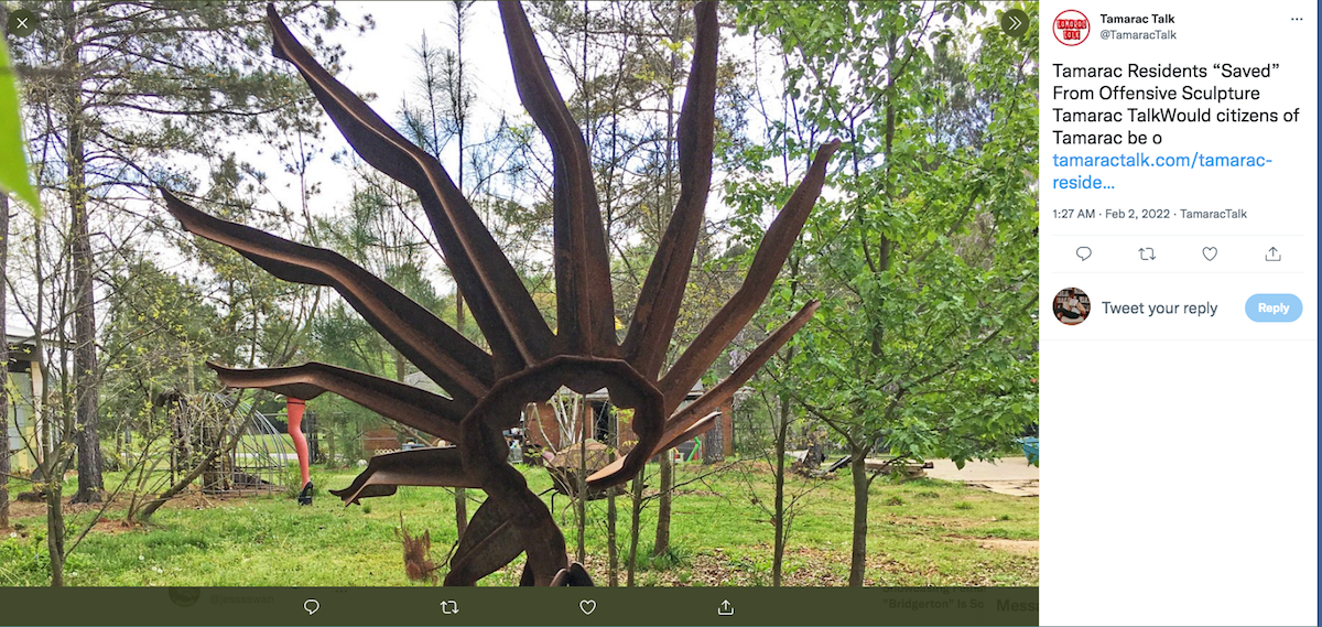 The pearl-clutching, first reported by local news blog Tamarac Talk, began when Ravitz landed on Dancing Bliss, which was slated for installation outside the Tamarac Public Works Department.