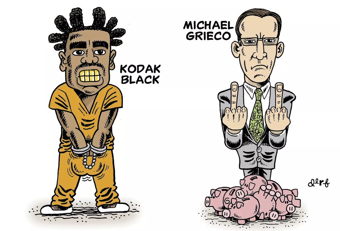 Kodak Black. It took a special skill to make a crime against women rise above the misogynist chorus in 2017. But Pompano Beach rapper Kodak Black was up to the challenge. He began the year on probation after posting a $100,000 bond following an alleged 2016 South Carolina incident, in which a teenager says he bit and raped her. In February, he landed back in jail for probation violations; his trips to Miami clubs and a boxing match in Cincinnati didn’t exactly count as house arrest. In April, a Miami bartender alleged that Black punched and kicked her while she was on the job; later that month, his anger-management counselor claimed he’d roughed her up after he disrupted a session by “burping repeatedly.” Oh, and those sexual assault allegations? He was indicted by a grand jury too and now faces a maximum sentence of 30 years in prison. All of the legal drama didn’t appear to have slowed his career: He released his debut studio album, Painting Pictures, as well as a mixtape, Project Baby 2, in 2017. But, hey, gotta pay those bills somehow. Just recently, a judge ordered him to pay $4,200 per month in child support after the mother of his 2-year-old son claimed he was withholding financial records.
