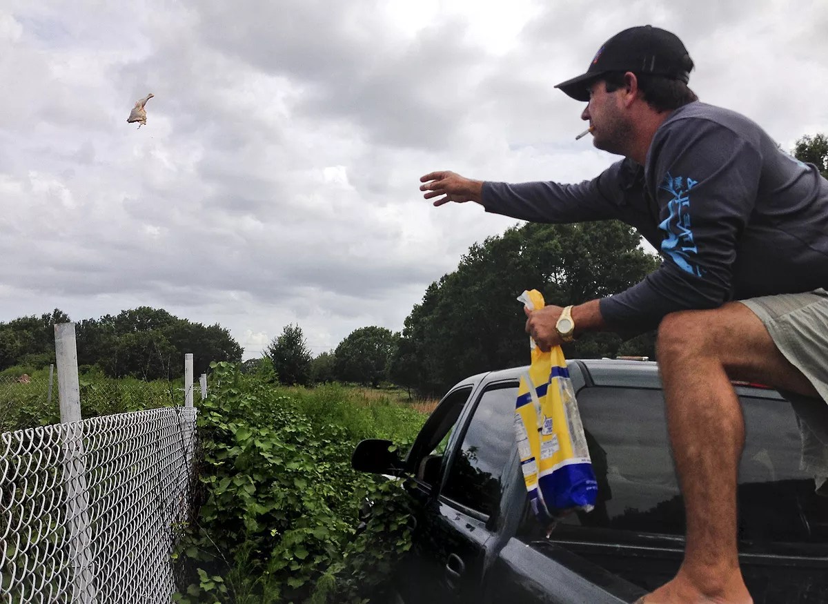 Another time, Blackledge was at the fake farm when Nichols stopped by with two hunters from Ohio to clean and package a 200-pound hog and a six-foot-three alligator. As the hunters posed for a photo, Nichols positioned a tag on the alligator to make it look official and then pocketed the tag to use again. On August 23, the officers say, Nichols even shot a protected white ibis and threw it on the grill during a lunchtime cookout.