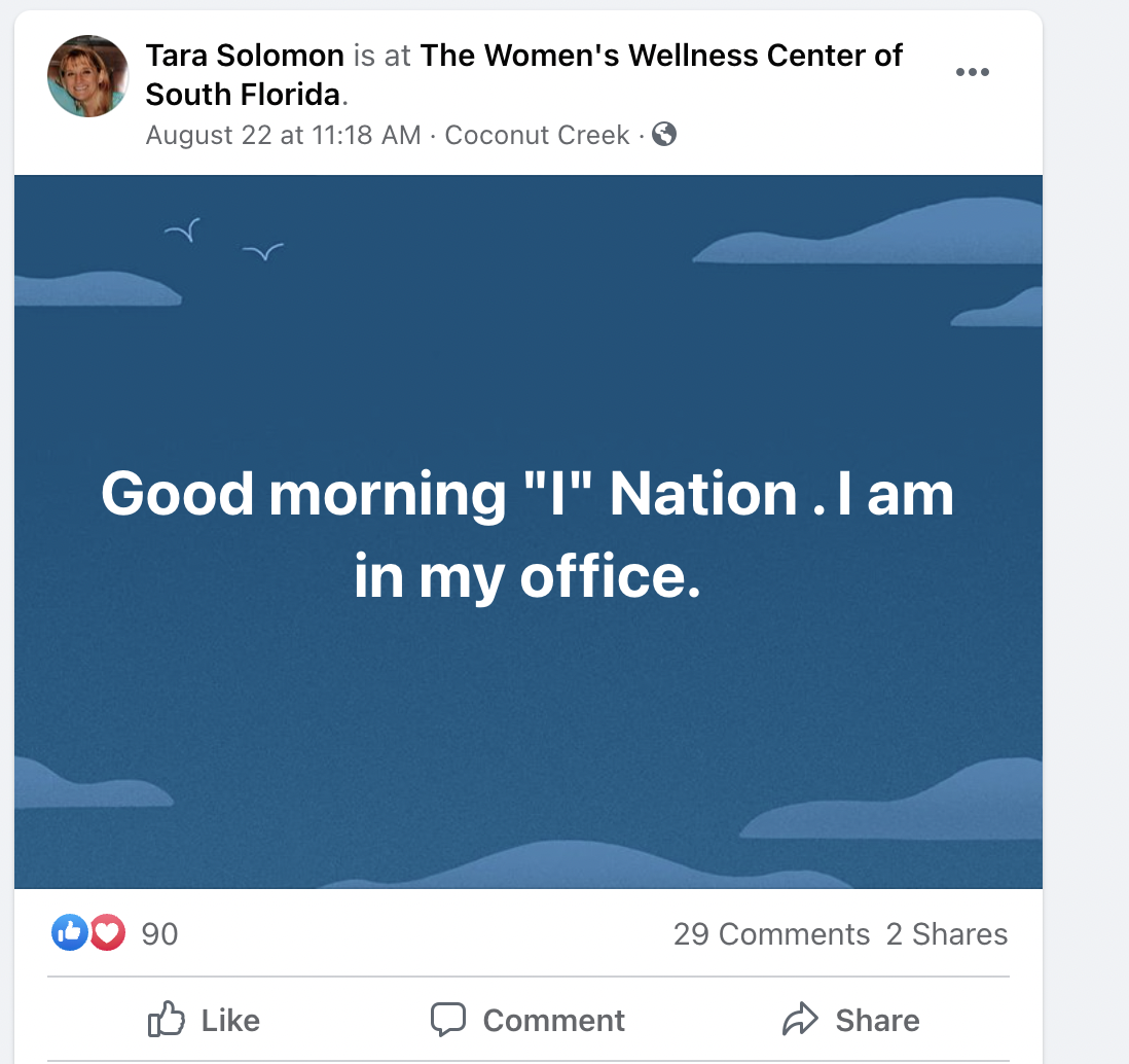 According to the Florida Department of Health, Solomon is a licensed medical doctor specializing in gynecology. According to her website, Solomon graduated from Albert Einstein College of Medicine in New York City and completed her residency at Columbia Presbyterian Medical Center She now runs the Women’s Wellness Center, a practice located in Coconut Creek, where she specializes in obstetrics, gynecology, and infertility.