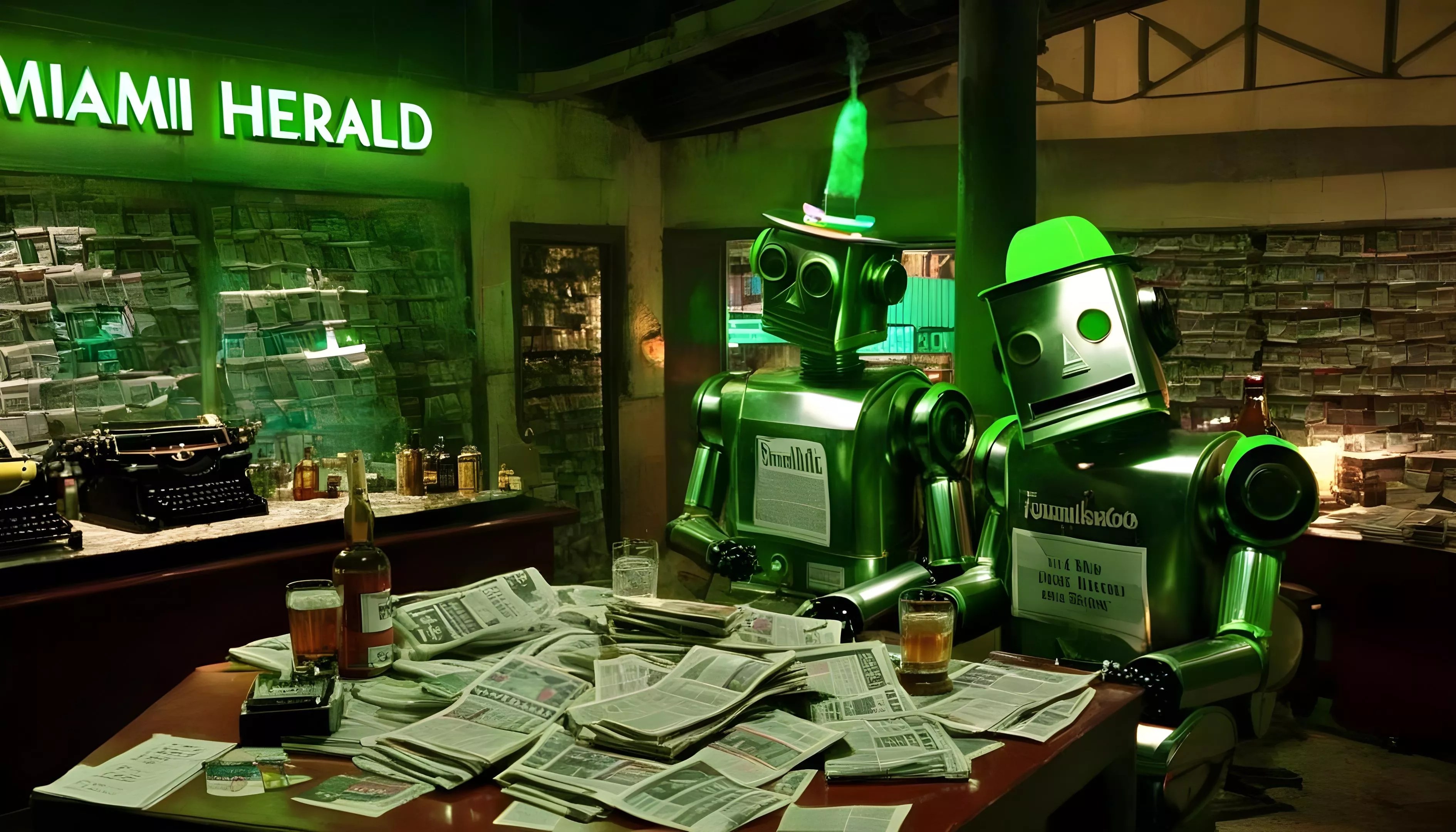 By the year 6523, the Miami Herald‘s parent company, run by an automated cost-cutting hedge fund, has eliminated the city government beat, gutted the Pulitzer Prize-winning newsroom, and stopped printing hard copies of the paper. All of the stories are now written by Herald Bots and artificial intelligence software. The managing editor is Herald Bot One, which began its career as a real estate reporter 4,500 years ago.