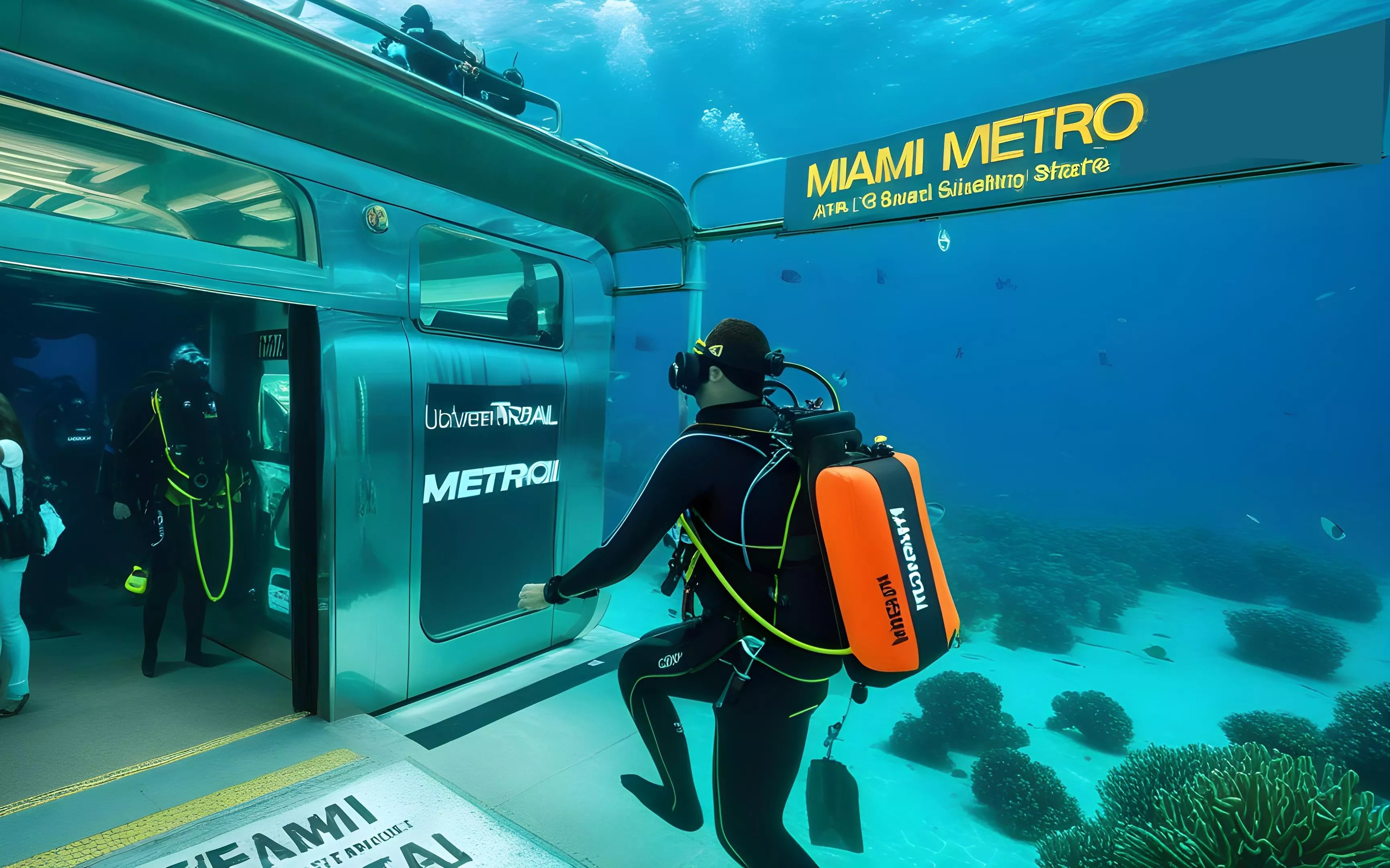 By the year 6523, polar ice caps have melted and the City of Miami is completely submerged in the Atlantic Ocean. We ride the Better Submarine Network to work and sport scuba gear to go out on the town, paying all of our expenses with digital cryptocurrencies. Somehow, there is still no Metromover extension connecting the city center to Miami Beach. You just have to float on over there.