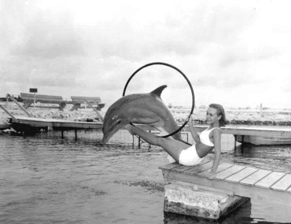 Splashing and trilling, the world’s most famous bottlenose dolphin defends a boy from a predatory shark. Though the 1963 film would catalyze a multibillion-dollar dolphin-captivity business, Flipper stole hearts, with Mitzi the dolphin as its star.