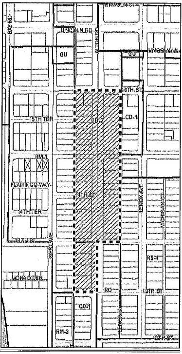 In Mid-Beach, the zone covers the area where Mount Sinai Medical Center stands, plus a few blocks along 41st Street between Sheridan Avenue and Indian Creek: The area north of the Julia Tuttle Causeway. Courtesy of City of Miami Beach 41st Street between Sheridan Avenue and Indian Creek Courtesy of City of Miami Beach