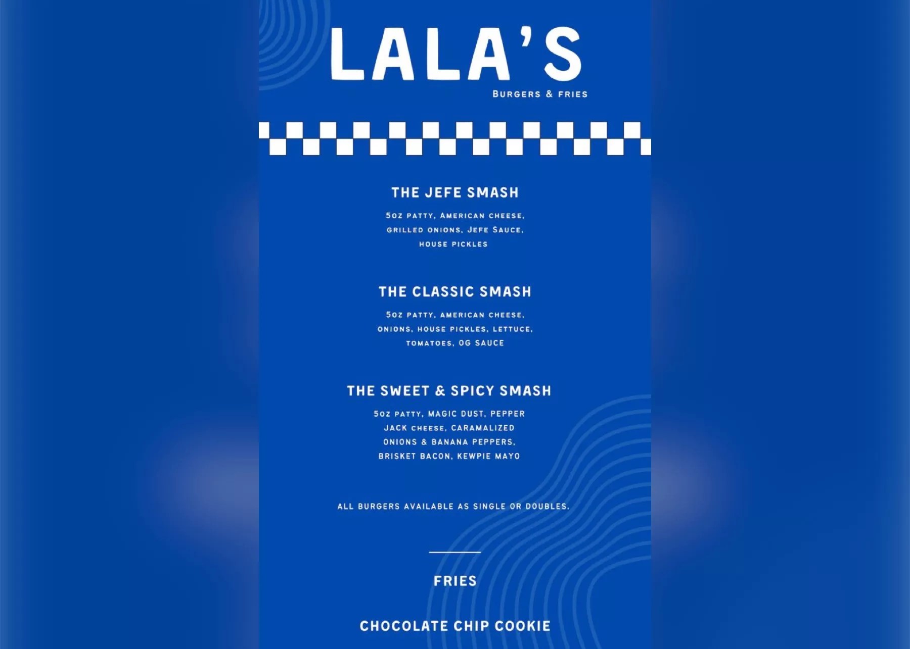For those unfamiliar with Apocalypse, the barbecue spot owned by Jeff Budnechky and his wife, Lala (who the burger pop-up is named after), has a reputation for its outstanding burgers. One of the most popular burgers at Apocalypse is the “Jefe Smash,” a burger made of juicy brisket and short rib patty, which is pressed onto a hot griddle for that smash burger crisp and a thick meaty bite. It’s then topped with American cheese, grilled onions, and “Jefe Sauce” before being nestled between Martin’s potato bun.