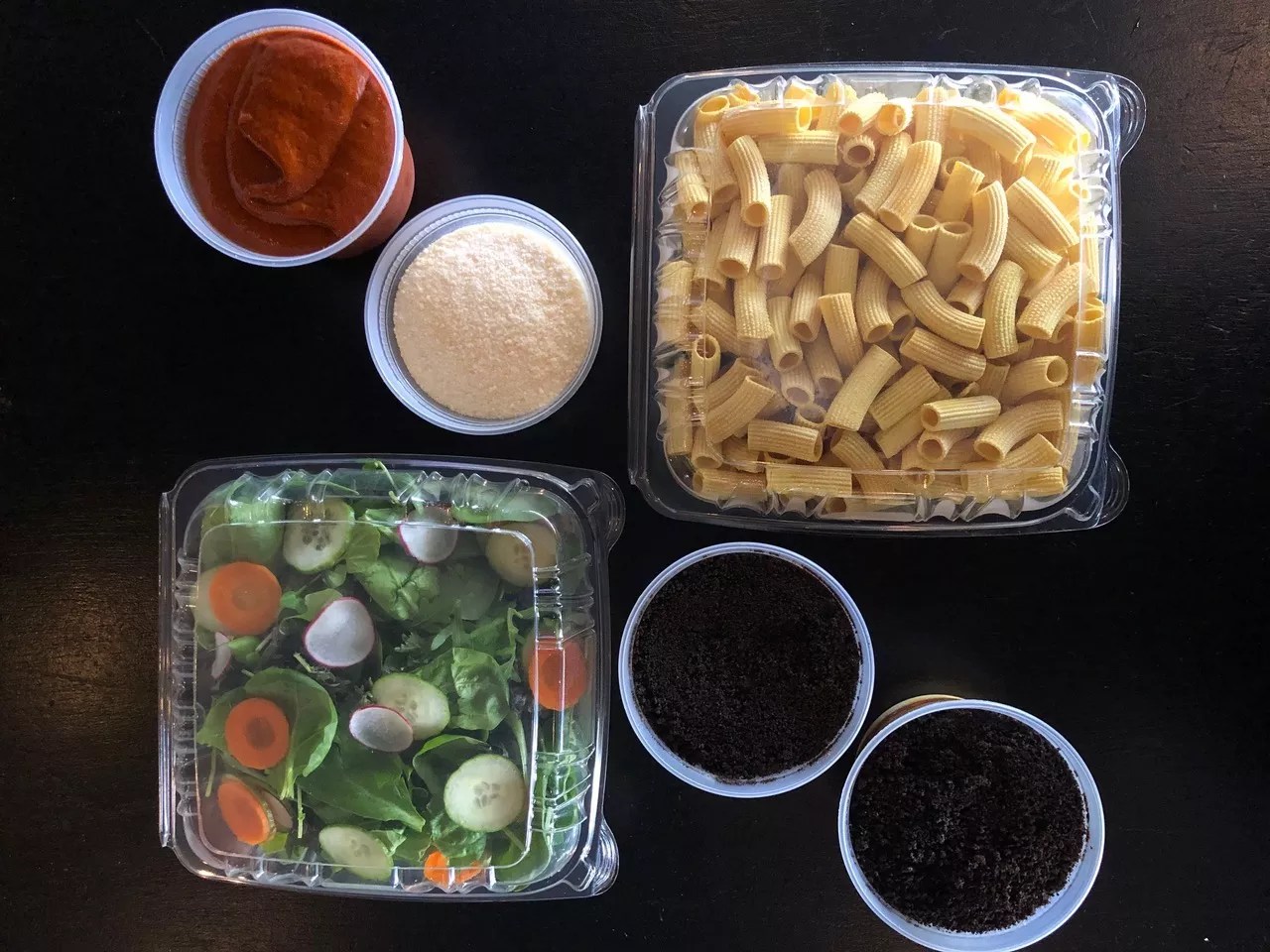 SuvVche is offering 50 percent off all sushi rolls and select ceviches, and Novecento is offering 50 percent off handmade pastas and salads. Plus, the newly created Novecento Market is serving affordable fresh-cut meats, sides, and half-off wines at select locations. Place orders online at suviche.com or novecento.com for delivery or takeout. Plus, take $5 off online orders by using the code WEBPROMO at checkout. Both brands also offer catering for larger groups or families. Orders are also available in single-serve portions. Eating House meal prep. Photo courtesy of Eating House
