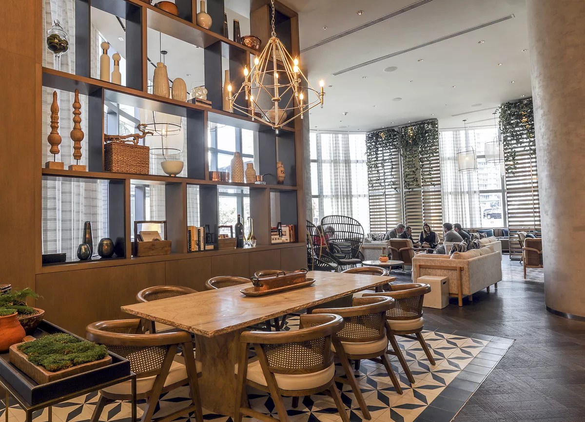 Miami’s Boulud Sud offers fare from alluring locations such as the French Riviera, Spain, Italy, Greece, Morocco, Lebanon, and Turkey. There’s not a single white tablecloth in sight in the 6,350-square-foot space. Light-wood furnishings, golden fixtures, live plants, and a playful Moroccan-tiled floor fill the space.