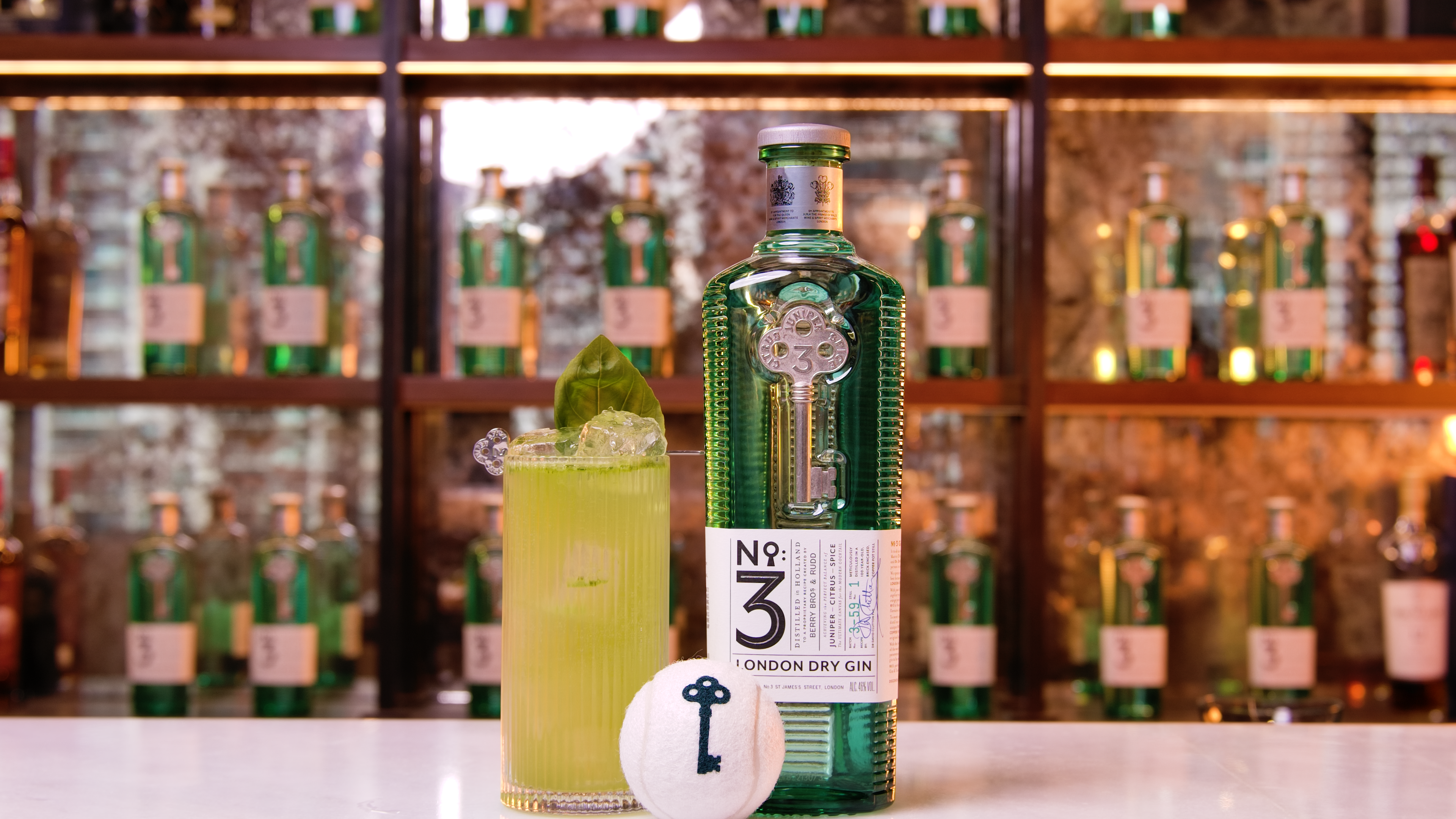 Located in the Palm Court, the Dobel Tequila Bar is also a returning favorite. Dobel brings 11 generations of tequila-making legacy to the Miami Open Campus serving the “Ace Paloma,” its signature drink. The cocktail is a great option for guests who prefer a fruity drink made with Maestro Dobel Tequila Diamante Cristalino and grapefruit soda. The “Courtside Cooler” from No. 3 Gin Courtside Club No.3 London Dry Gin photo