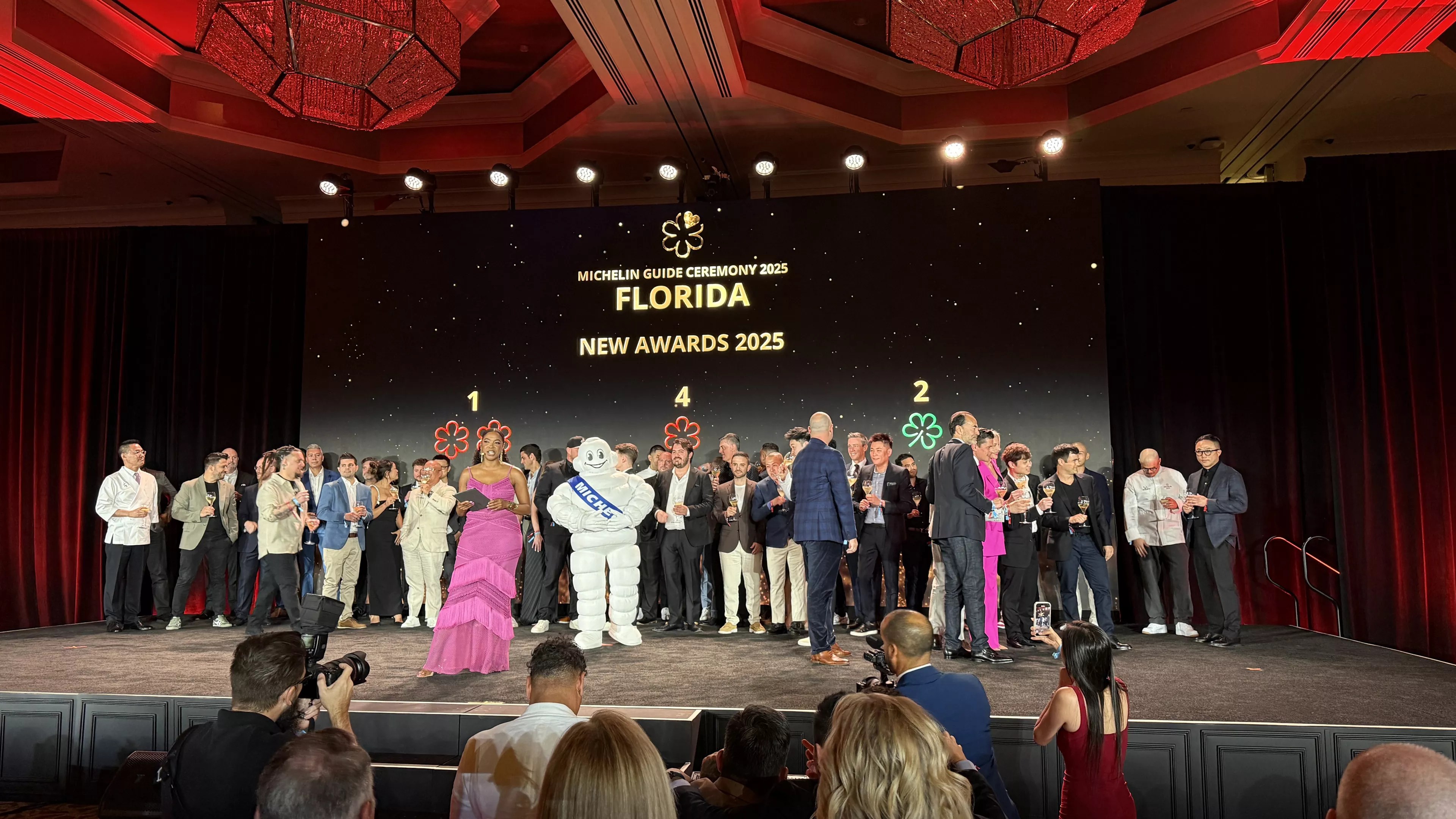 The full list of winners on the stage at the 2025 Florida Michelin Guide Awards in Orlando, Florida, on April 17.