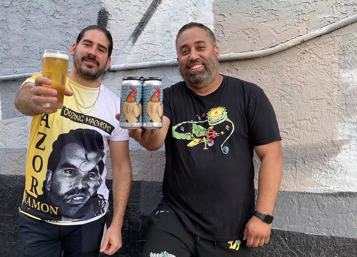 Miami Beer Week president Adrian Castro (left) and founder and vice president William Rivera raise a toast with “Lager Me Bro,” the official collaboration beer available during the inaugural event.